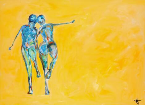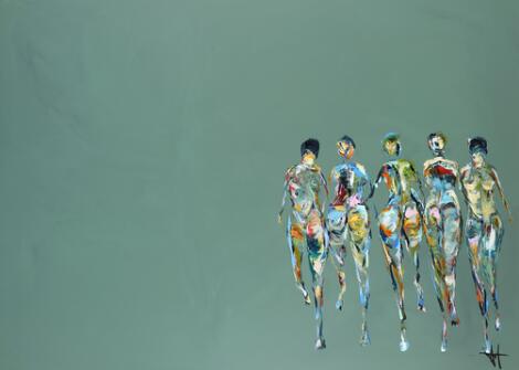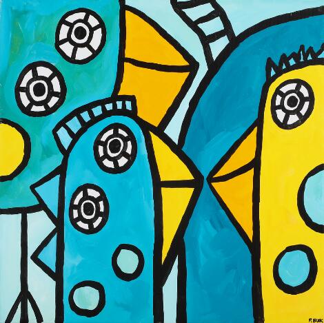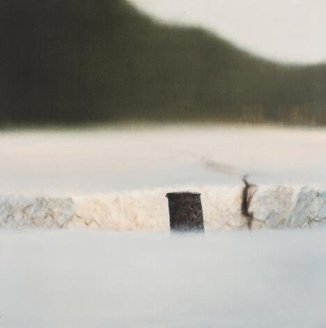 Per Buk: "Afrejsens stilhed". Signeret P. Buk. Akryl på lærred. 60 x 60 cm.
