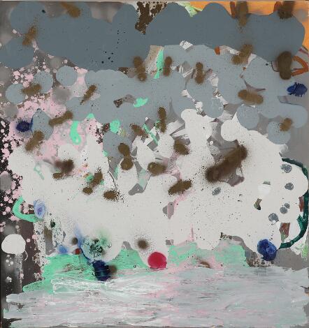 Henrik Busk Andersen: Uden titel. Signeret monogram. Akryl på lærred. 130 x 180 cm.