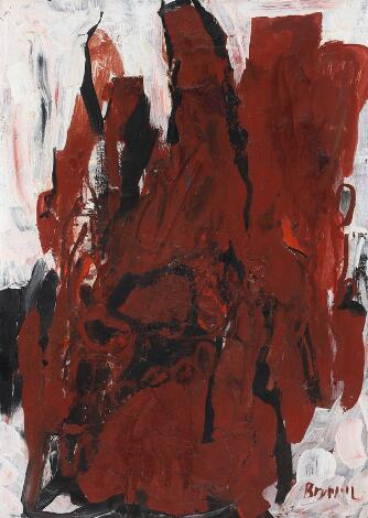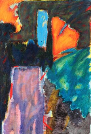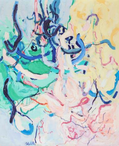 Berta Moltke: Uden titel. Signeret på bagsiden. Olie på lærred. 101 x 81 cm.