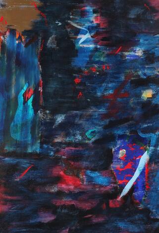Mads Madsen: Uden titel, 1987. Signeret på bagsiden Mads, 87. Olie på lærred. 145 x 100 cm.