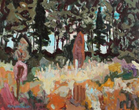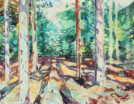 Einar R. Kragh: Skovparti. Signeret Einar R. Kragh, 57. Olie på plade. 67 x 86 cm.