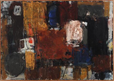 Kai Lindemann: Uden titel, 1962. Signeret Lindemann. Olie på lærred. 70 x 100 cm.