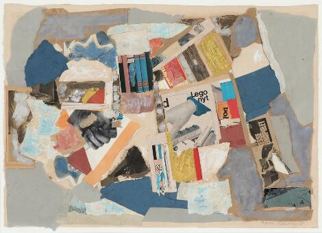 Agnete Bille Therkildsen: Uden titel, 1971. Signeret Agnete Therkildsen. Collage. Bladstørrelse 37 x 53 cm.