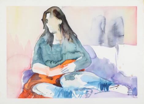 Tine Hind: En kvinde. Signeret T Hind 2014. Akvarel på papir. Bladstørrelse 57 x 77 cm.