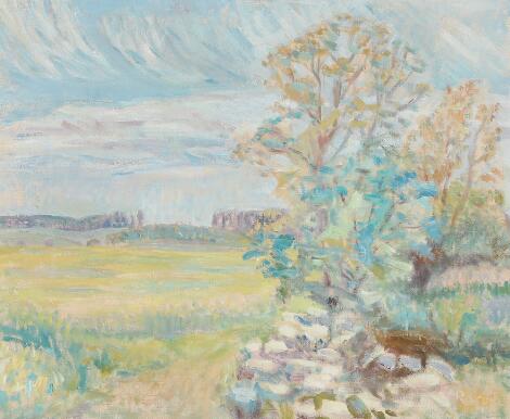 Harald W. Lauesen: Landskab. Signeret H.W. Lauesen. Olie på lærred. 63 x 79 cm.