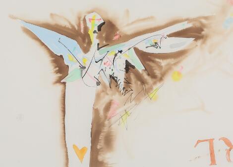 Sven Dalsgaard: "Med vinger". 1986. Signeret Svend Dalsgaard 1986. Akvarel og bly. Lysmål 49 x 69 cm.