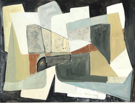 Jean Deyrolle: Uden titel. Signeret J. Deyrolle, med dedikation "á Christian" (I. Chr. Sørensen). Gouache på papir. Lysmål 28 x 37 cm.