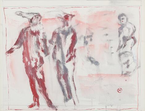 Preben Hornung: Figurkomposition. Signeret monogram 86. Gouache og blyant på papir. Lysmål 44 x 56 cm.
