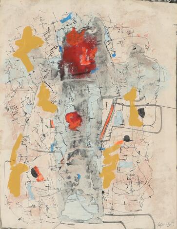 Robert Jacobsen: Uden titel. Signeret Rob Jacobsen. Mixed media på papir. Lysmål 60 x 45 cm.