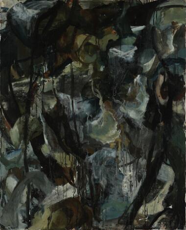 Bentemarie Kjeldbæk: Uden titel, 2008. Signeret på bagsiden. Olie på lærred. 230 x 200 cm. Uindrammet.