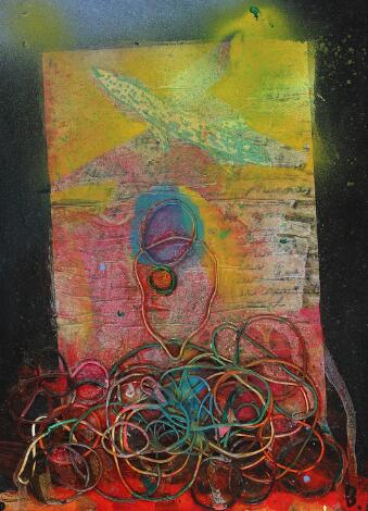 Viera Collaro: Uden titel. Signeret V. Collaro 88. Mixed media på papir. Bladstørrelse 100 x 70 cm.
