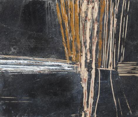 Holger Friedrich: Uden titel. Signeret HF. Olie på masonit. 118 x 38 cm.