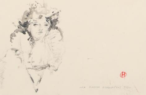 Preben Hornung: Portræt af en kvinde. Signeret monogram. Akvarel og bly på papir. Bladstørrelse 17 x 26 cm.