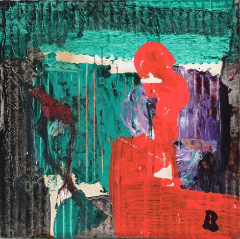 Dan Ray: Uden titel. Signeret DR; Signeret på bagsiden Dan Ray #10. Olie på lærred. 80 x 84 cm.