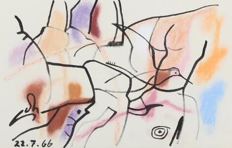 Robert Jacobsen: Uden titel. Signeret Robert Jacobsen. Oliekridt på papir. Bladstørrelse 17 x 24 cm.