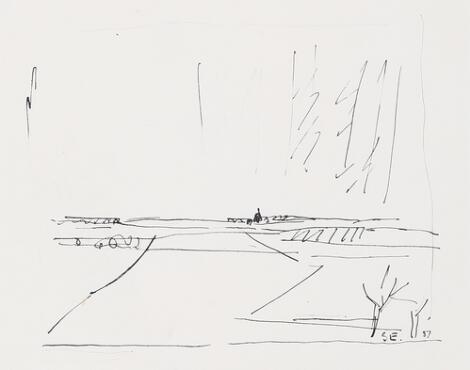 Svend Engelund: Landskaber. Alle signeret Blyant og tusch på papir. 15,5 x 19, 14 x 17,5 og 14 x 20 cm. Uindrammede. (3)