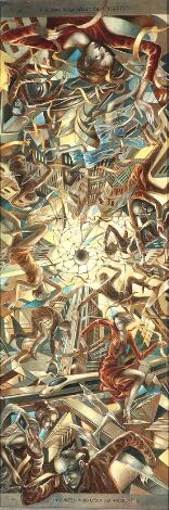 Mads Madsen: Uden titel, 1987. Signeret på bagsiden Mads 87. Olie på lærred. 145 x 100 cm.