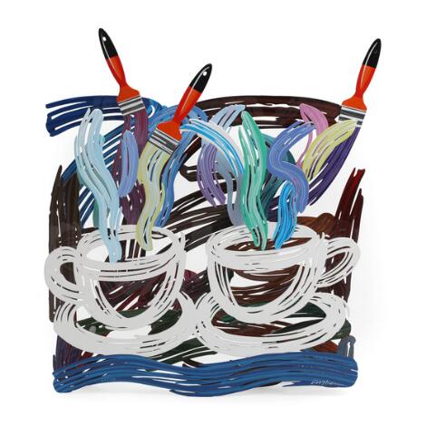 David Gerstein: "Couple of Strokes". Signed Gerstein 67/150. A handpainted cutout steel sculpture 59 x 51 x 9 cm. (2)