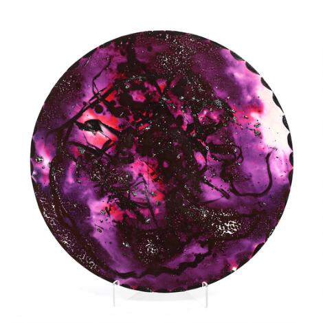 Tróndur Patursson: Untitled. Unsigned. A circular purple glass dish, decorated with dark decoration. Diam. 50 cm.