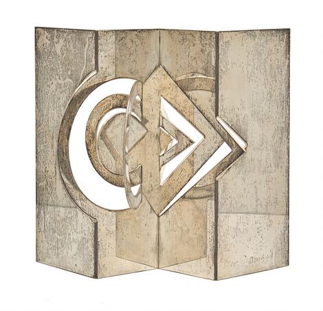 Henning Damgård-Sørensen: Concrete composition. Signed Damgaard, 61/300. Silver stamped 930. H. 15. W. 16 cm.