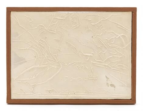 John Olsen: "Fuglekongen", 1969. Signed with title and date on the reverse. Relief. 25 x 34 cm.