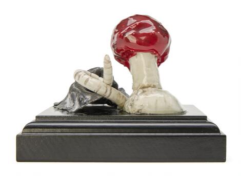 Maria Rubinke: Untitled. Signed Maria Rubinke, 133/150. Polychrome glazed porcelain, on a wooden base. H. 7 cm. W. 10 cm. D. 10 cm.