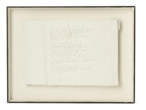 Lars Hartmann: "Paragraph of Nails", 2002. Signeret. Relief. Mixed media i ramme af jern. D. 6. H. 31 B. 41 cm.