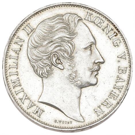 Germany, Bavaria, Maximilian II, 2 Gulden 1855, KM 848, Dav. 604
