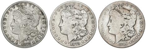 USA, Morgan Dollars 1878 CC, 1879 CC and 1890 CC, KM 110, in total 3 pcs