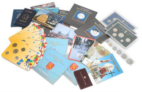 Collection of coin sets relating to Finland, France, Greece, the Netherlands, Yugoslavia, "Lapland", Luxembourg, Norway, Portugal, Spain and the Vatican