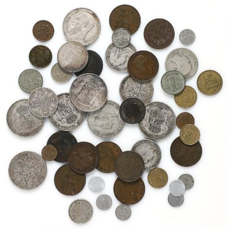 Collection of coins from Belgium, England, Finland, Portugal, Rusia and Spain, in total 45 pcs incl. some silver coins