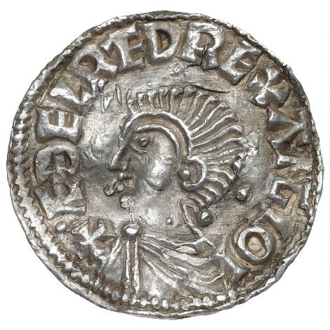 England, Aethelred II, 978–1016, Hereford, Penny, Long Cross, 997–1003, Moneyer Beorhstan, 1.75 g, North 774, S 1151, wavy flan, peckmarks