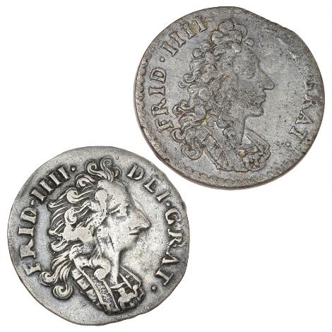 2549/5217Norge, Frederik IV, 8 skilling 1701, 1714, NMD 23, 37, H 6A-B. (2)