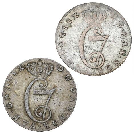 2549/5222Norge, Christian VII, 2 skilling 1781 HIAB, NMD 79B, H 16, FP 8.2, rettet stempel A på G i DANSKE og rettet stempel T på O i GOT, Bauerts stempler