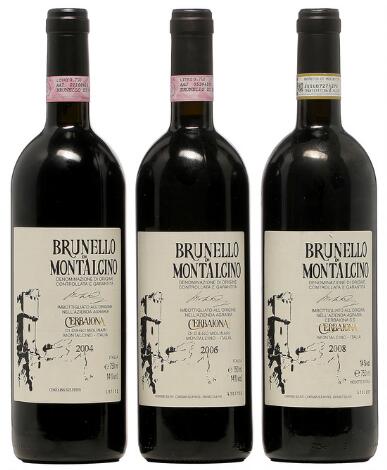 1 bt. Brunello di Montalcino, Cerbaiona 2004 A-A/B (bn). etc. Total 3 bts.