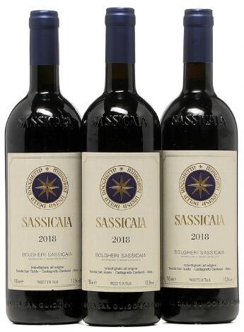 3 bts. Sassicaia IGT, Tenuta San Guido 2018 A (hf/in).