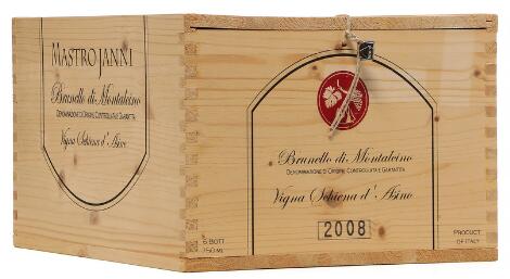 6 bts. Brunello di Montalcino "Vigna Scieno d'Asino", Mastrojanni 2008 A (hf/in). Owc.