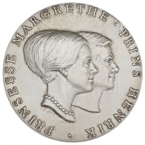 Frederik IX, Crown Princess Margrethe and Prince Henrik's wedding on June 10, 1967, Salamon, ER 83, Ag, 55 mm, 79.85 g