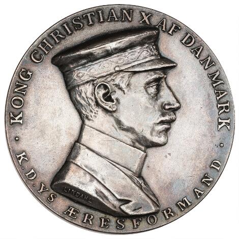 Christian X, R.D.Ys (Royal Danish Yacht Clubs) Honorary President, Rev.: For Good Steering, Lindahl, Ag, 40 mm, 33.00 g - rare