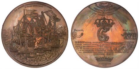 Christian V, The Battle af Køge Bay, 1677, Schneider, G 124, Ossbahr 67 - 2 single-sided copies of the obverse, respectively the reverse of this medal.