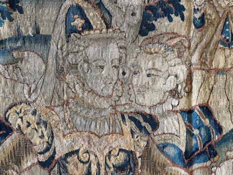 Et Flamsk tapet med fremstilling af dronning Udført i uld og silke. 16. årh. 316 x 245.