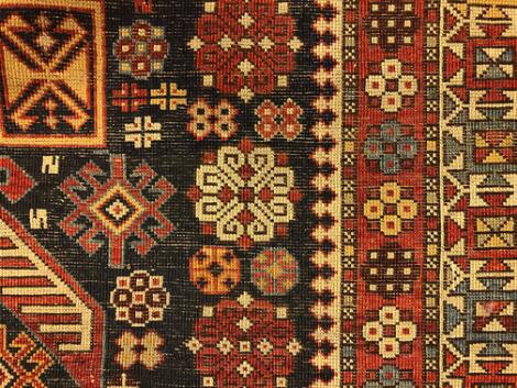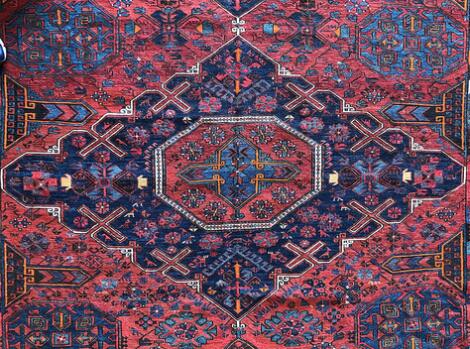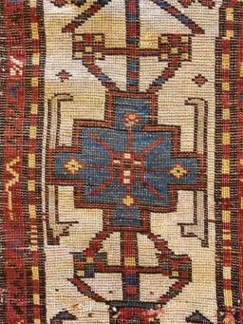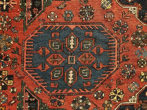 Kuba sumak tæppe, Kaukasus. Gentagelsesmønster med forskudte stiliserede medaljoner. 20. årh.s første halvdel. 469 x 350.