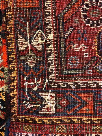 Antikt Khamseh tæppe, sydlige Persien. Gentagelsesmønster med de klassiske stiliserede kyllinger og fugle motiver. 19. årh. 202 x 133.