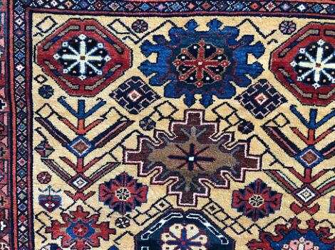 Antikt Kuba-Shirvan tæppe, Kaukasus. Design med livets træer på blå bund. 19. årh. 151 x 125.