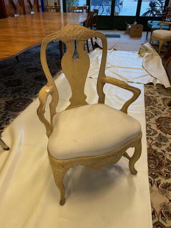 Et par svenske rokoko armstole af bemalet træ. 18. årh.s midte. (2)