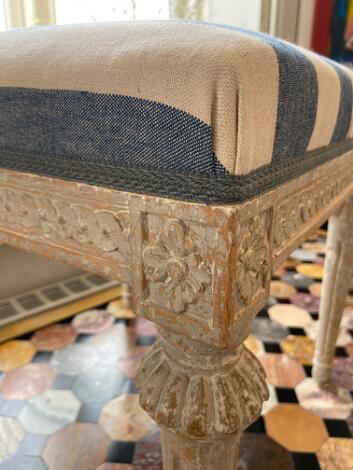 Et par gustavianske taburetter af bamalet træ, hver udskåret med ottetalsbort og rosetter, runde kannelerede ben. 18. årh.s slutning. (2)