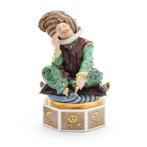 Axel Locher: Siddende sultan af porcelæn dekoreret i overglasur farver. Juiane Maries mærke. Royal Copenhagen. H. 21 cm.