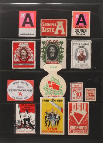 Cinderellas. Collection "RUNDSKUE" labels. Totally 27 whole sheets + 4 double-sheets. Scarce.