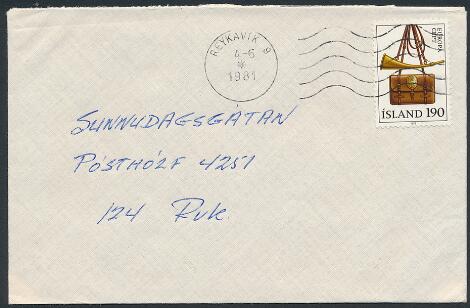 1981. Cept. 190 øre. Cover with variety REYKAVIK 4-6 1981 instead of REYKJAVIK. This cancelation were only in used for a few weeks.