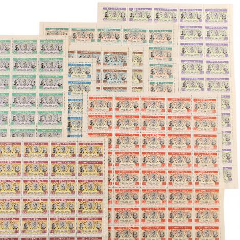 Albania. 1947. Komitetit Te Qindress. "Political iussue". Set with 8 diff. values in NH sheets of 50 stamps (totally 400 stamps)